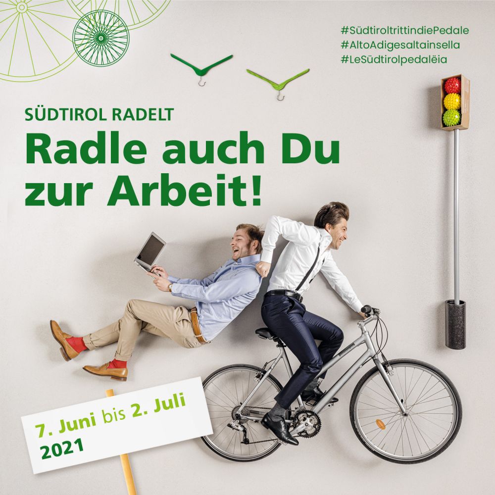 Am 7. Juni startet die Aktion „Südtirol radelt. Radle auch Du zur Arbeit!“, die jene Radler besonders belohnt, die den täglichen Weg zur Arbeit ganz oder teilweise mit dem Fahrrad zurücklegen.